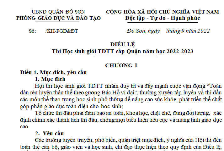- Danh sách học sinh đăng ký tham gia thi Học sinh giỏi TDTT cấp Quận năm học 2022-2023 do BGH ký tên và đóng dấu.