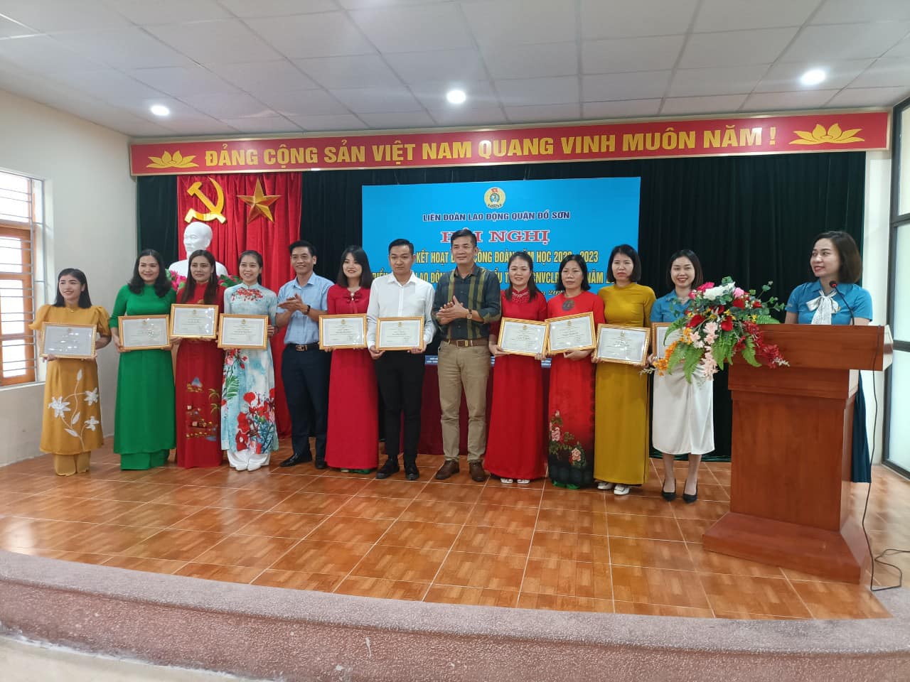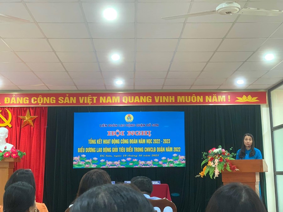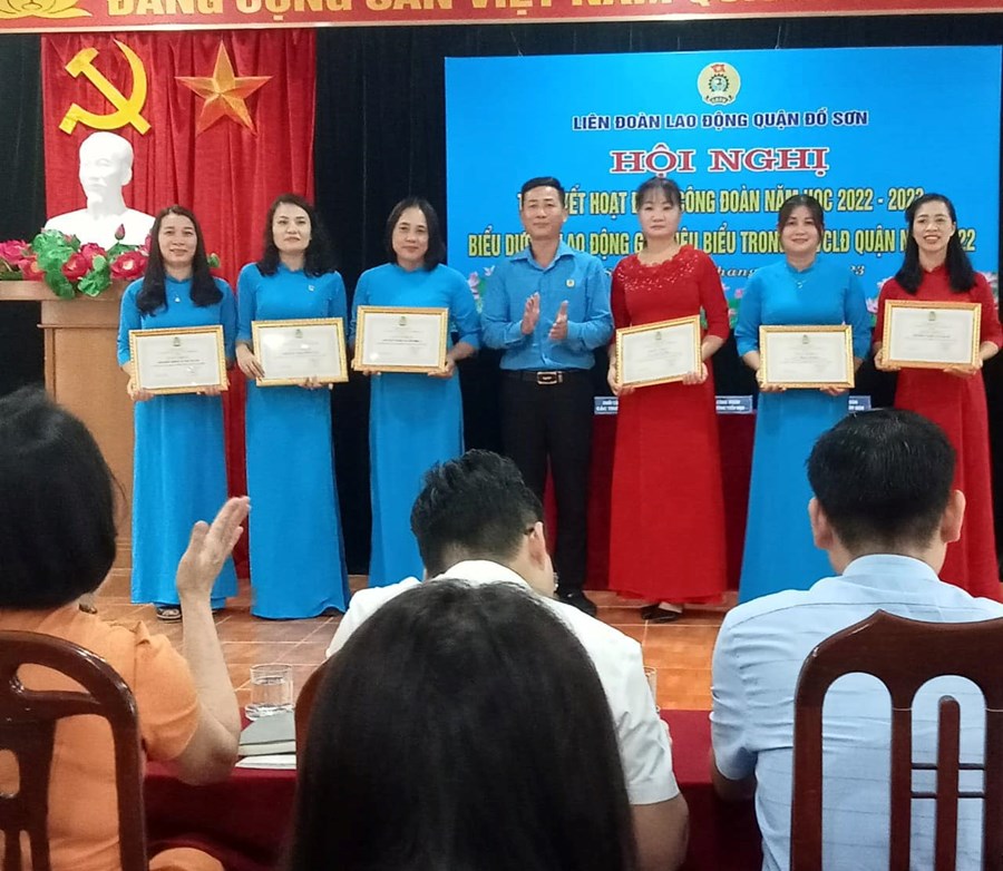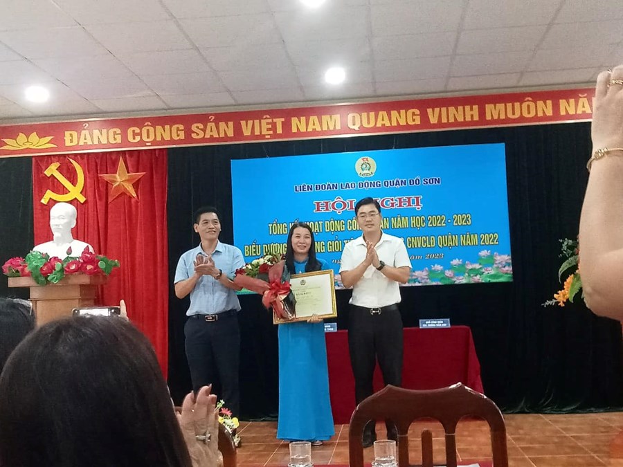 Sáng ngày 19/10/2023, tại “Hội nghị Tổng kết hoạt động công đoàn năm học 2022-2023, biểu dương lao động giỏi tiêu biểu trong CNVCLĐ quận năm 2022”, Công đoàn Trường Tiểu học Vạn Sơn vinh dự được tặng giấy khen của Ban Thường vụ liên đoàn lao động quận Đồ Sơn. Đ/c Ngô Thị Thu được tặng bằng khen của Ban chấp Liên đoàn lao động Việt Nam. Đ/c Lưu Thị Ngọc Mai được tặng giấy khen của Ban thường vụ Liên đoàn lao động Quận Đồ Sơn.