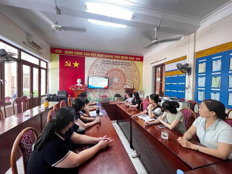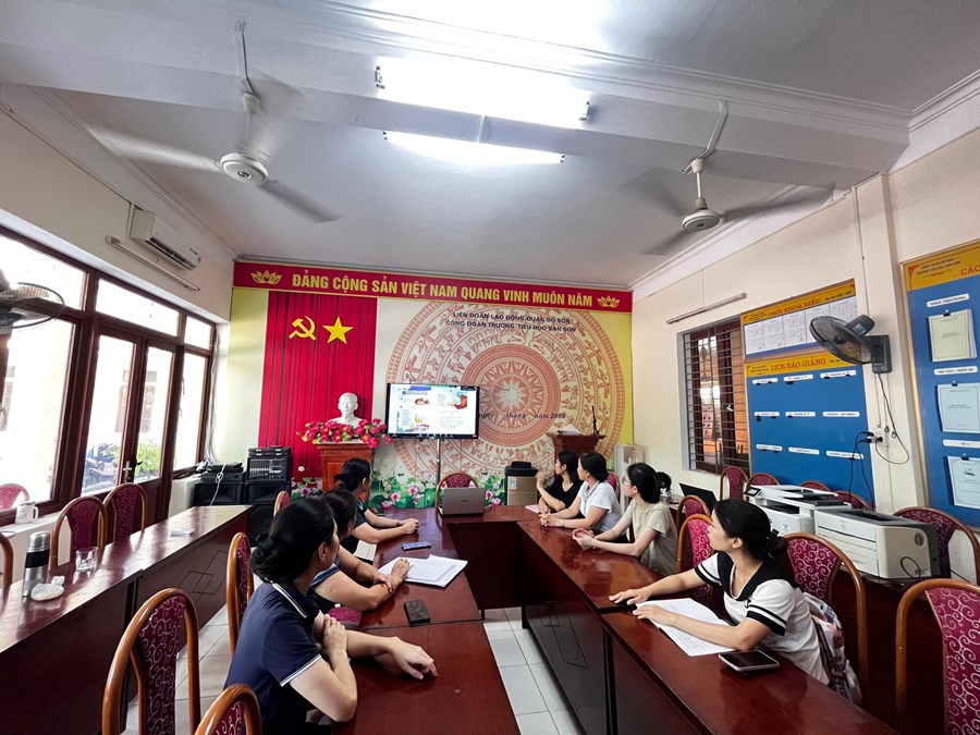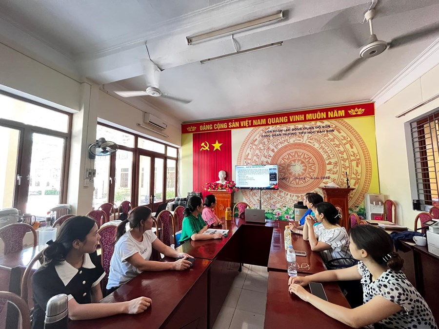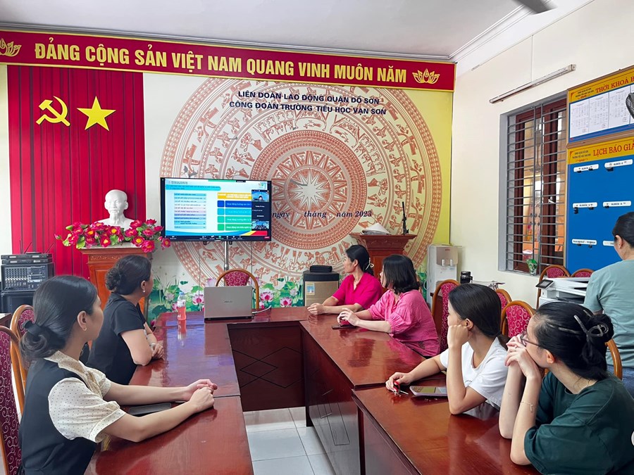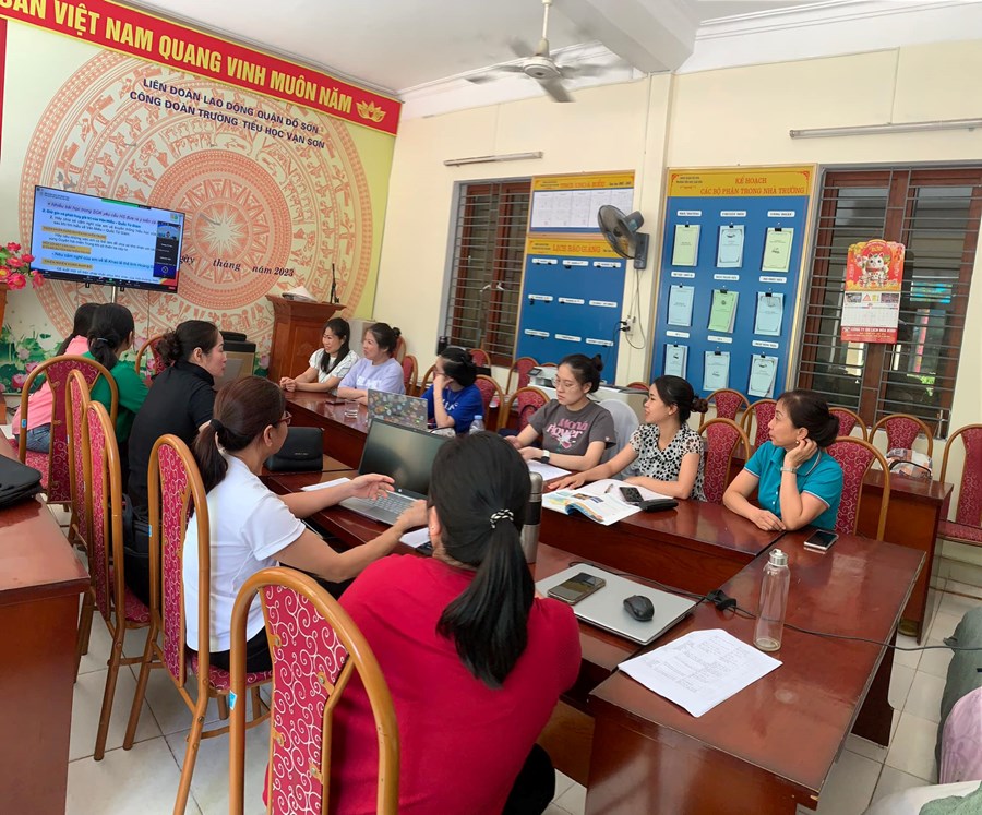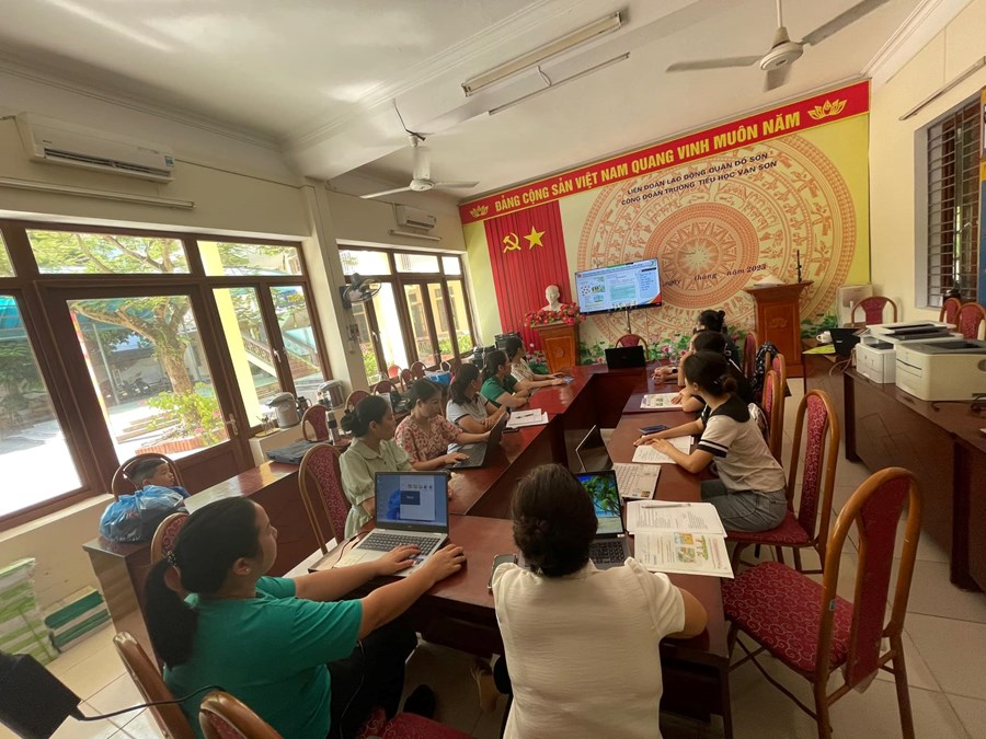 Thực hiện Kế hoạch số 80/KH-SGDĐT ngày 21/6/2023 của Sở Giáo dục và Đào tạo Hải Phòng về việc tập huấn, bồi dưỡng giáo viên sử dụng sách giáo khoa lớp 4 năm học 2023-2024, từ ngày 24/7/2023 đến 28/7/2023, trường Tiểu học Vạn Sơn tổ chức cho cán bộ và giáo viên tham dự tập huấn sách giáo khoa lớp 4 bộ Kết nối tri thức với