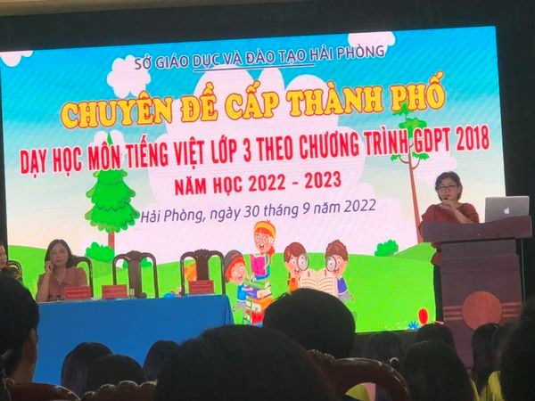 tiếp tục phát huy tinh thần giao lưu, học tập sự đổi mới, sáng tạo từ đồng nghiệp, đồng chí Phó Hiệu trưởng Lưu Thị Tuyết Mai và giáo viên lớp 3 Trường Tiểu học Vạn Sơn đã đến dự chuyên đề cấp Thành phố “Dạy Tiếng Việt lớp 3 chương trình GDPT 2018” do PGD quận Kiến An tổ chức